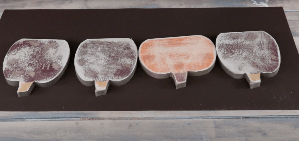 To begin, I had to remove all the glitter lettering from my MDF pumpkins. I picked up four of these pumpkins from Dollarama and used some 80 grit sandpaper to get all the glitter off.