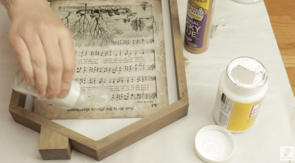 To add a touch of holiday sparkle, I applied a layer of tacky glue to the sheet music and sprinkled on some diamond sugar dust glitter, focusing on the title and music notes for a subtle, elegant effect.